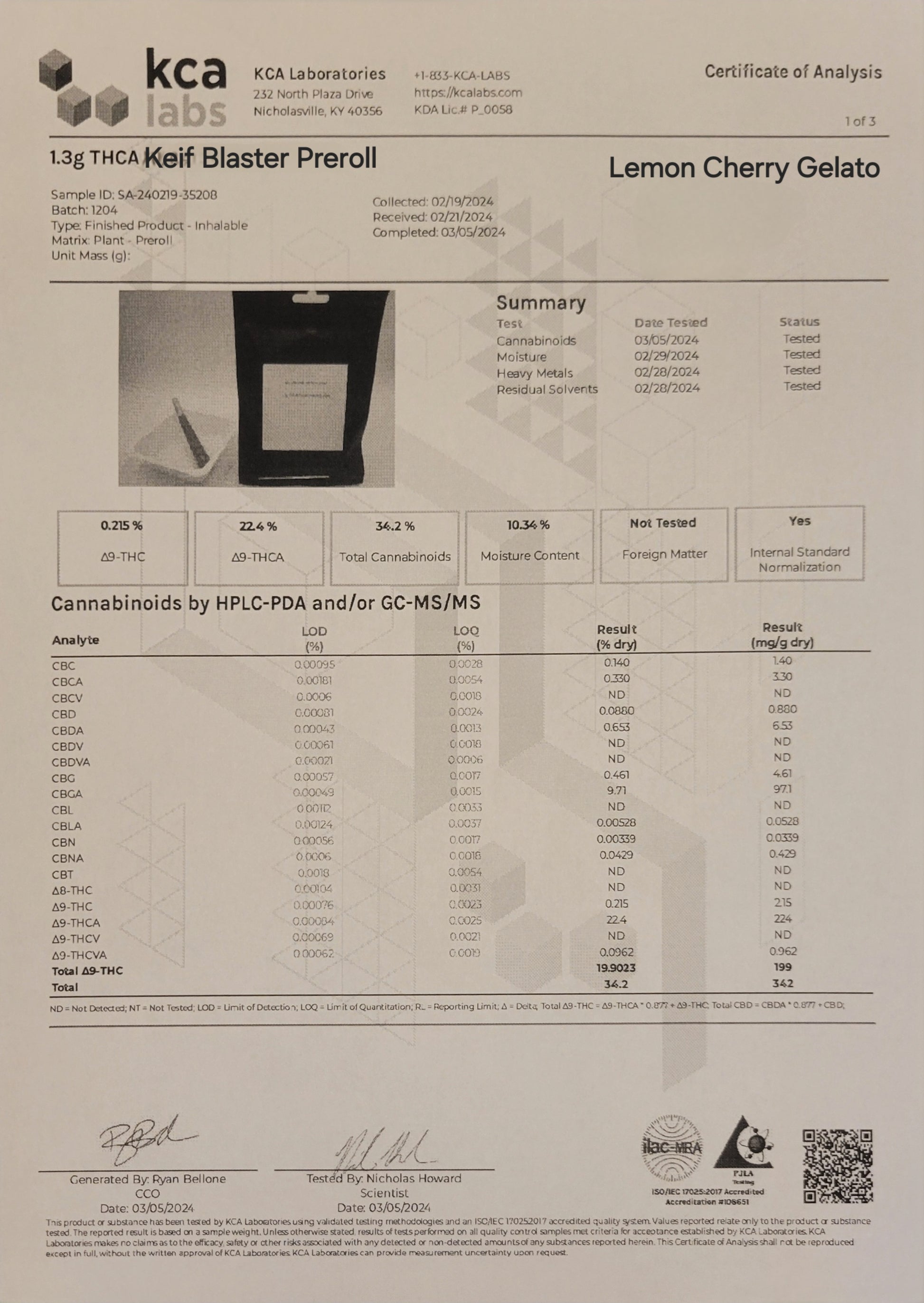 PreRoll Kief Blaster Singles 27.1% THCA 1.3g