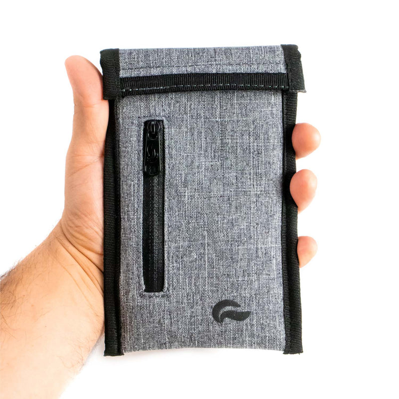 When you’re rolling with the homies, there’s no need to stress. This small smell-proof wallet warrants no further investigation, with a CarbonFlow™ lining to keep obvious aromas inside.A velcro roll closure doubles down on scent prevention, with a Thermo isolated pocket to keep essentials close at hand.